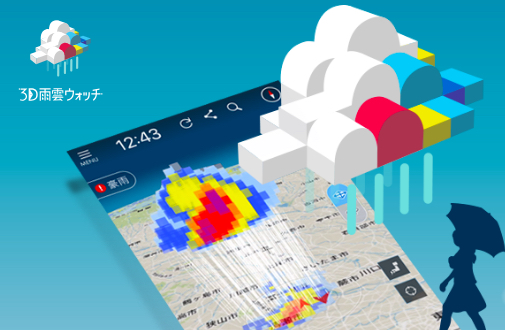 3D Amagumo Watch, a torrential rain forecasting app using state-of-the-art weather radar, detects the likelihood of rain by monitoring cloud formation and from that materialize data and warnings to be issues for evacuation purposes if necessary. Using MTI High ICT levels, disaster countermeasure and preventive tools can be introduced and support people lifestyle greatly.